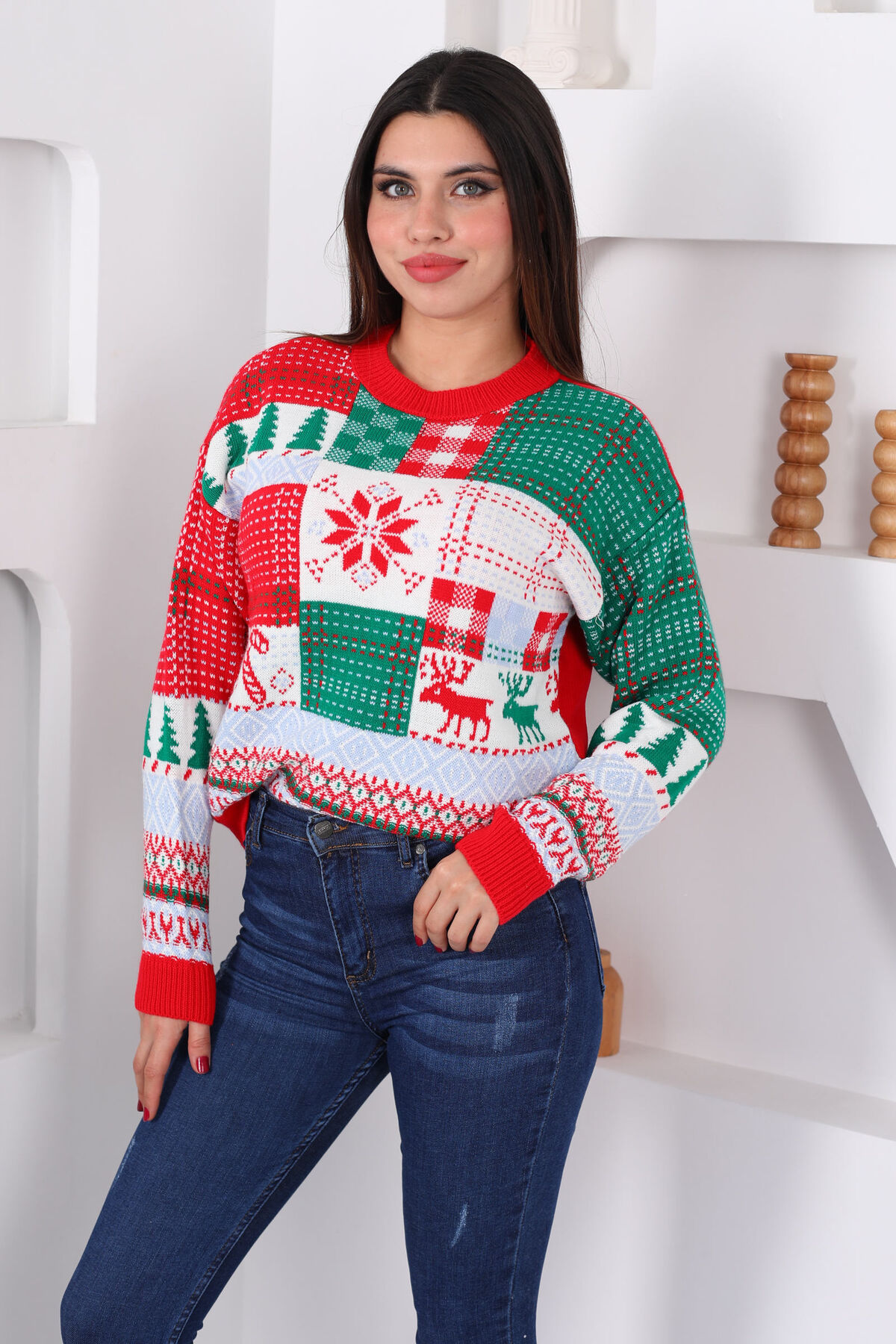 Yılbaşı Temalı Bisiklet Yaka Triko Kazak