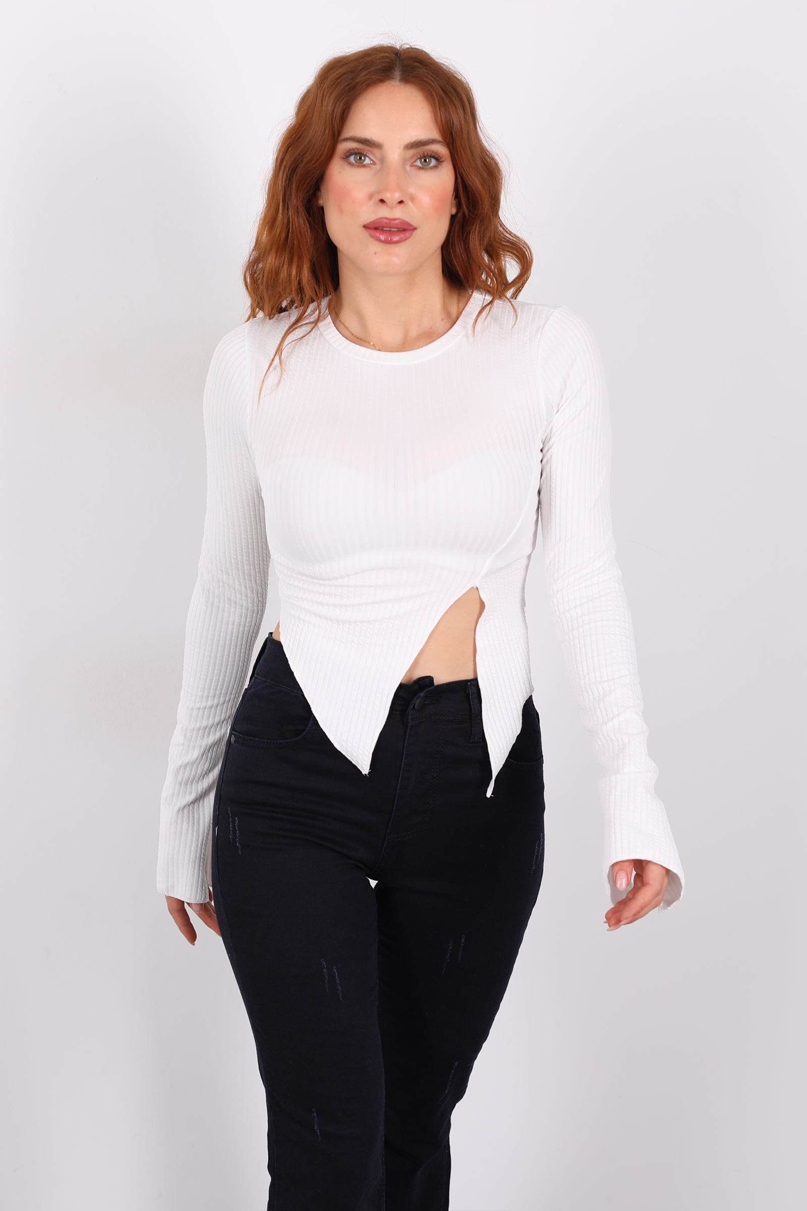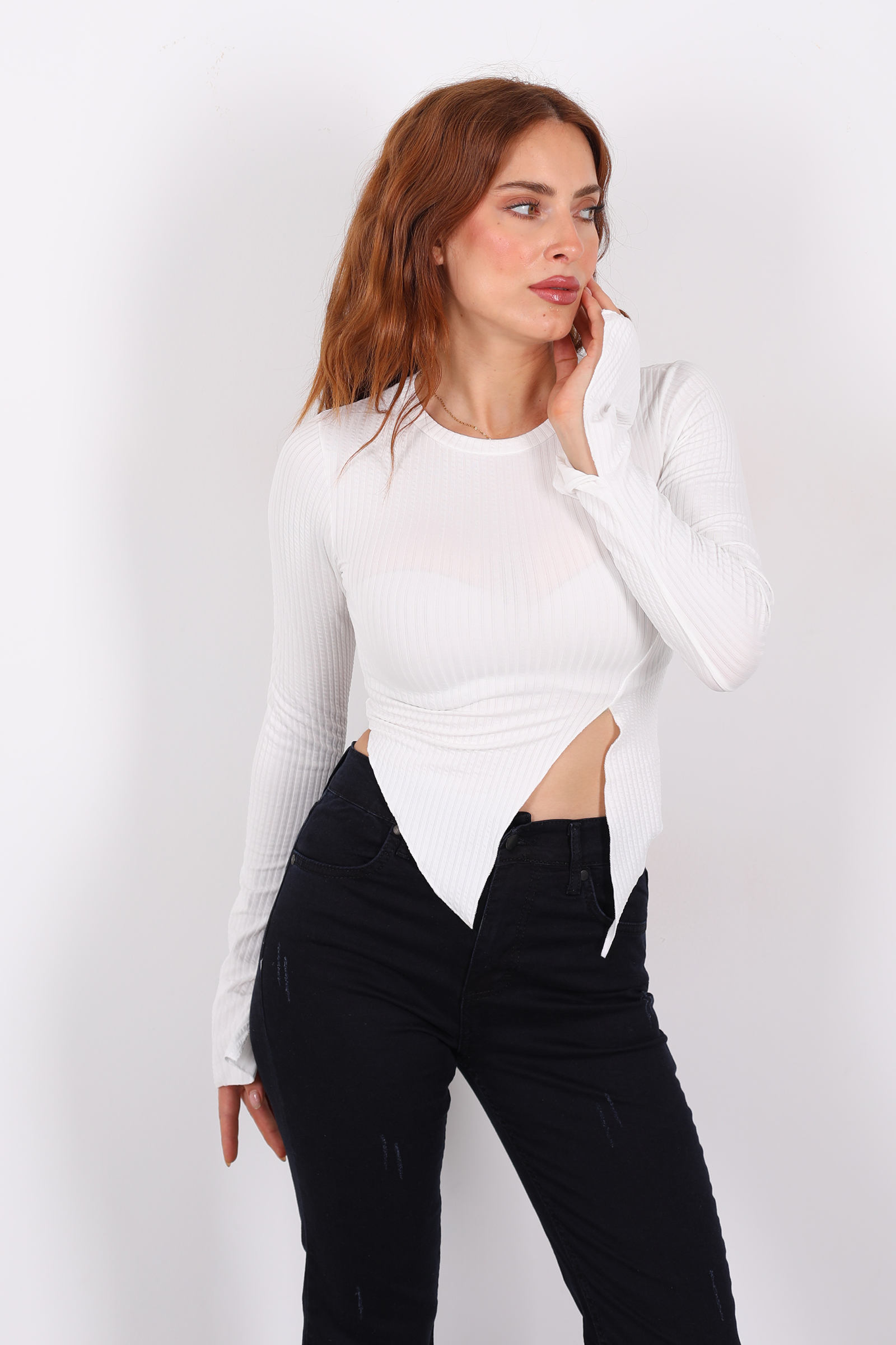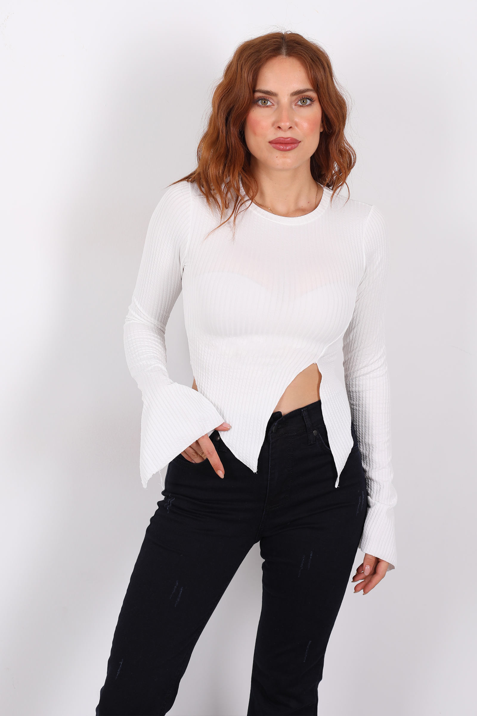 Beyaz bluz, İspanyol kol tasarımı ile zarafeti ve feminenliği ustalıkla harmanlıyor. Uzun kolları, geleneksel kesimiyle daha geniş ve hacimli bir yapı sunarken, kolda yer alan yırtmaç detayı her hareketinizde hafif bir dalgalanma yaratarak romantik ve havadar bir siluet oluşturuyor.Kalıp olarak bluz, rahat bir duruş sunuyor. Omuzdan bele kadar dökümlü bir yapıya sahip, bu da vücut hatlarını aşırı vurgulamadan feminen bir siluet yaratıyor.