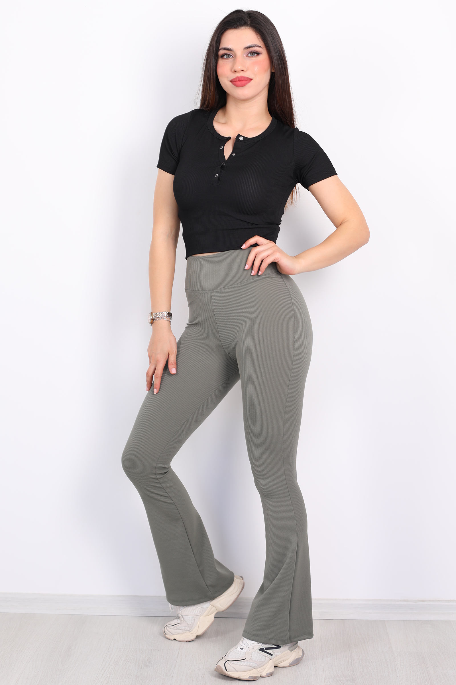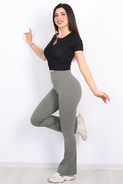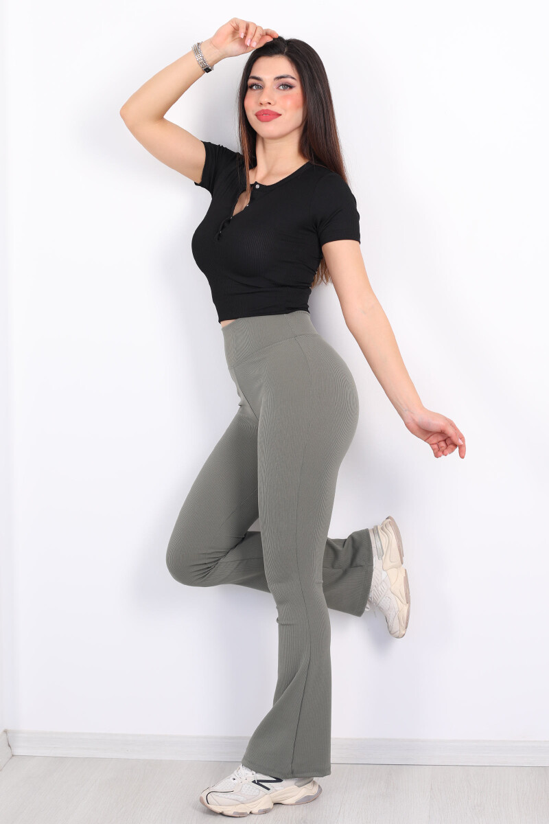 Yüksek bel ispanyol paça haki kadın fitilli tayt, şıklığı ve rahatlığı bir arada sunuyor. Fitilli kumaş yapısı, vücudu sararak şık bir siluet oluştururken, yüksek bel tasarımı belinizi inceltir. İspanyol paça kesimi, retro bir hava katarak hem gündelik hem de özel kombinlerinizde rahatlıkla kullanılabilir. Pamuk ve polyester karışımı kumaşı, esnek ve nefes alabilir özellikleriyle gün boyu konfor sunar.