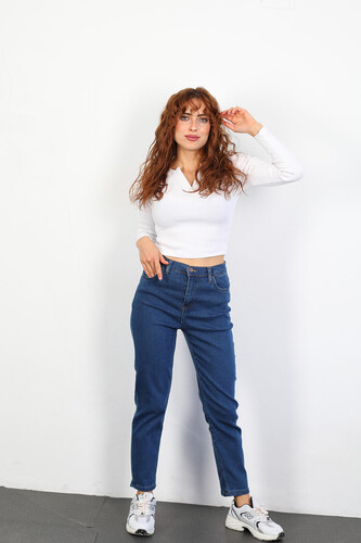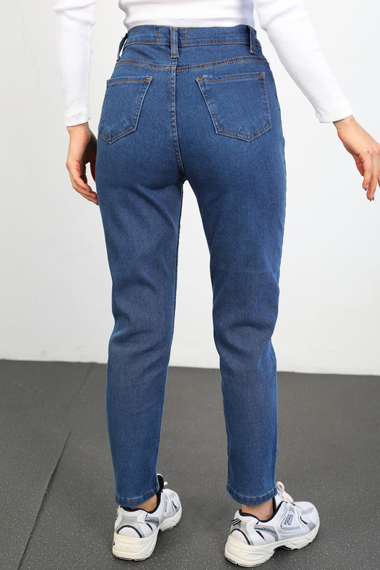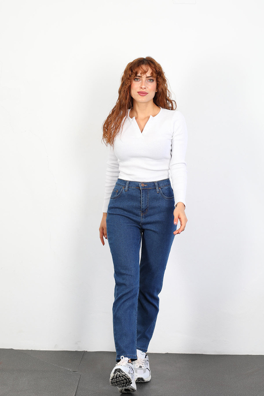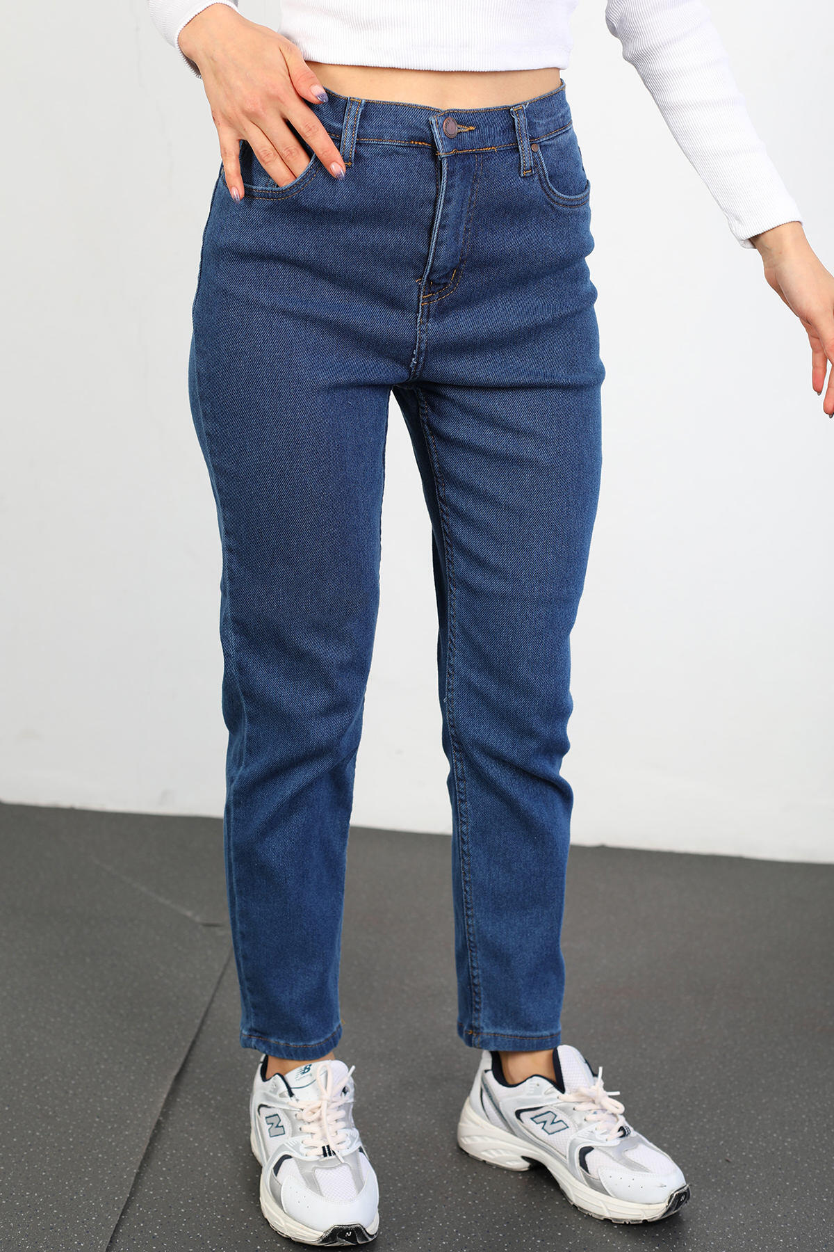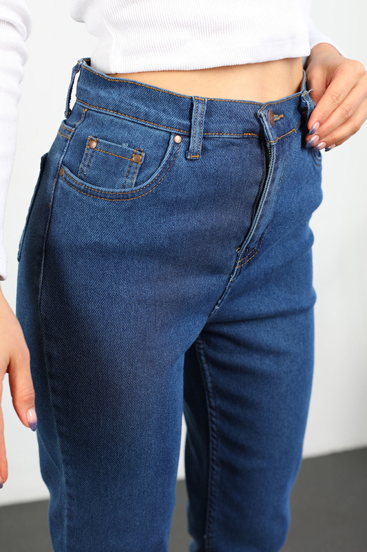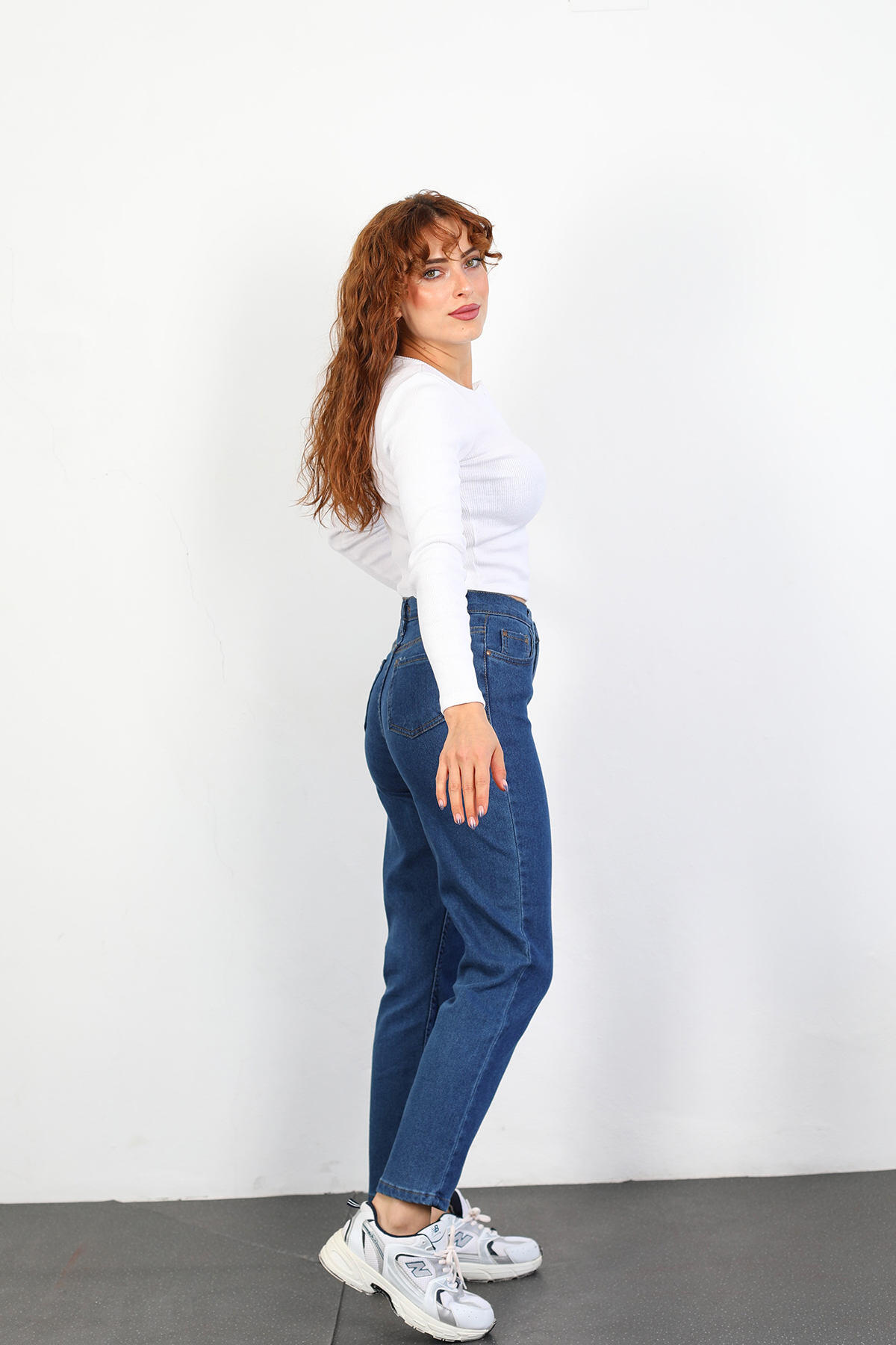 Yüksek Bel Likralı Kadın Koyu Buz Mom Jean Pantolon, şıklığı ve rahatlığı bir arada sunuyor. %98 pamuk ve %2 likra karışımı kumaşı, esnek yapısıyla vücuda oturur ve hareket özgürlüğü sağlar. Koyu buz rengi, her türlü üst giyimle kolayca kombinlenebilir.