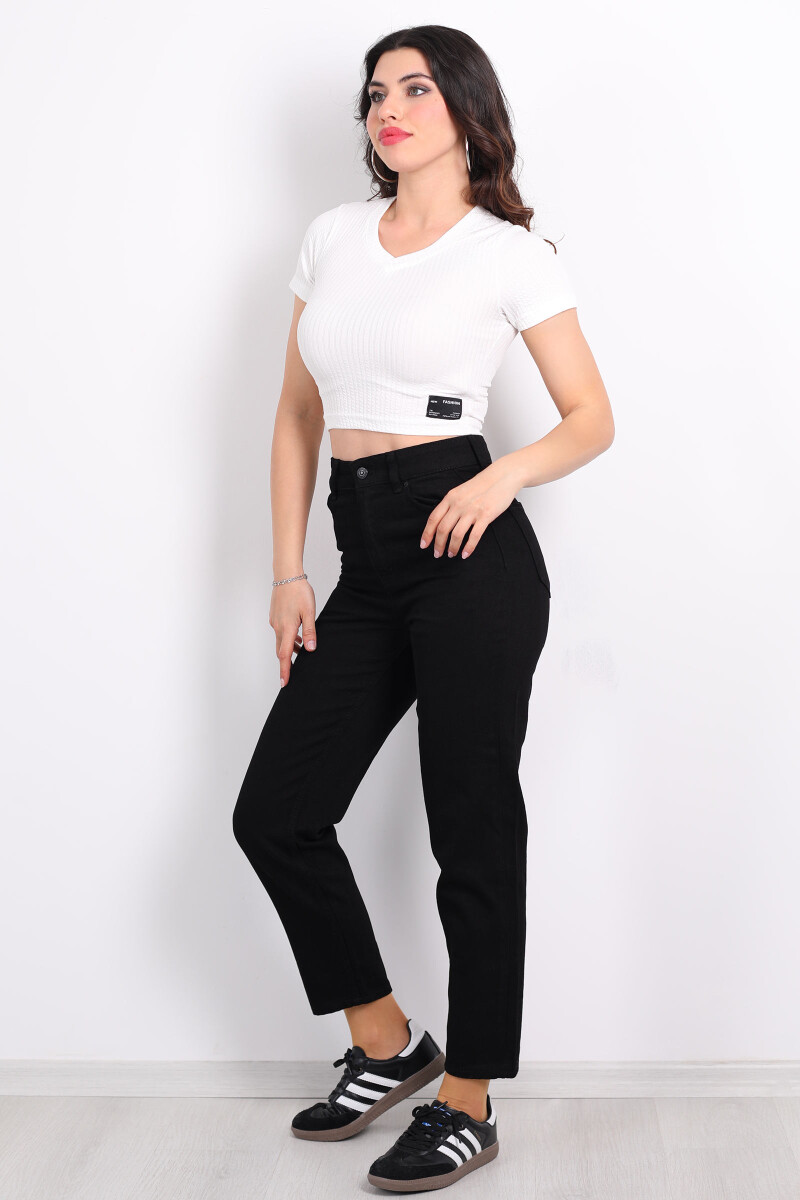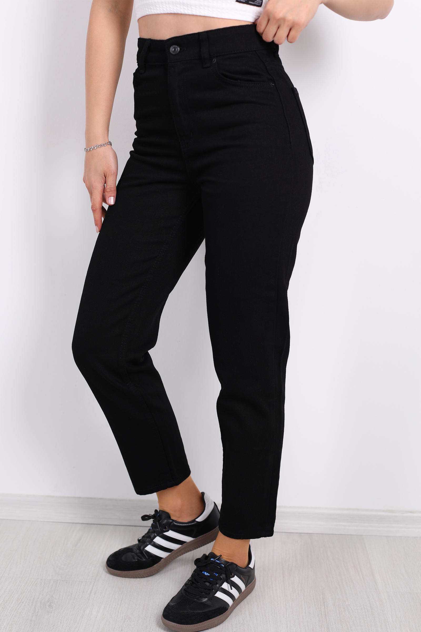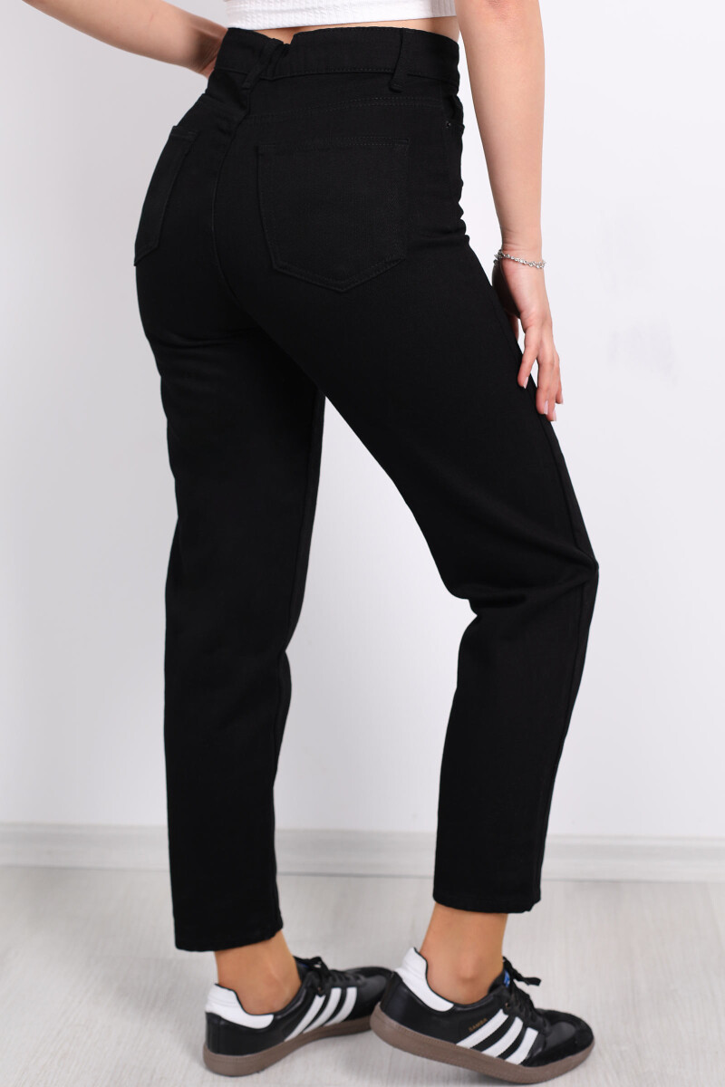 Bu siyah mom jean, yüksek belli tasarımı ve retro havasıyla dikkat çekiyor—hem günlük şıklık hem de gece kombinleri için ideal. Yüksek bel kesimi, beli zarifçe sarar ve bacak boyunu olduğundan daha uzun gösterir. Koyu siyah tonu, her stil ile mükemmel uyum sağlar.