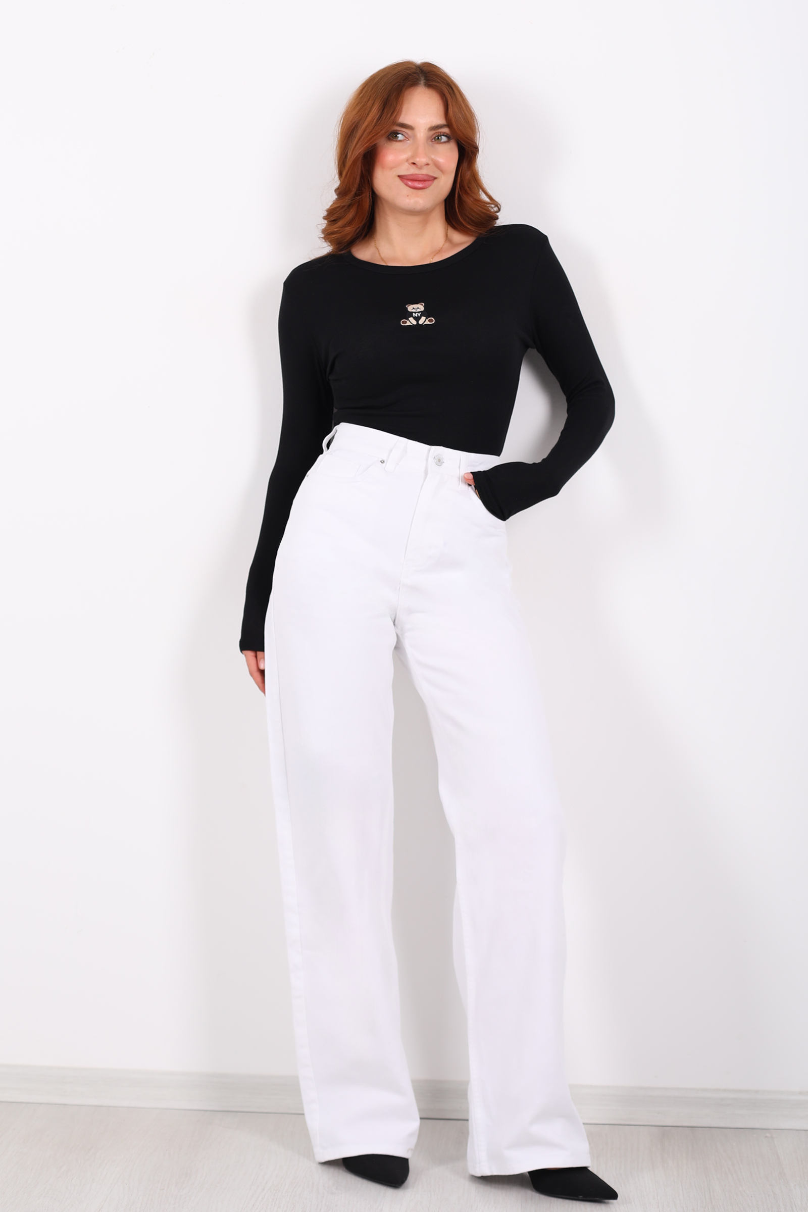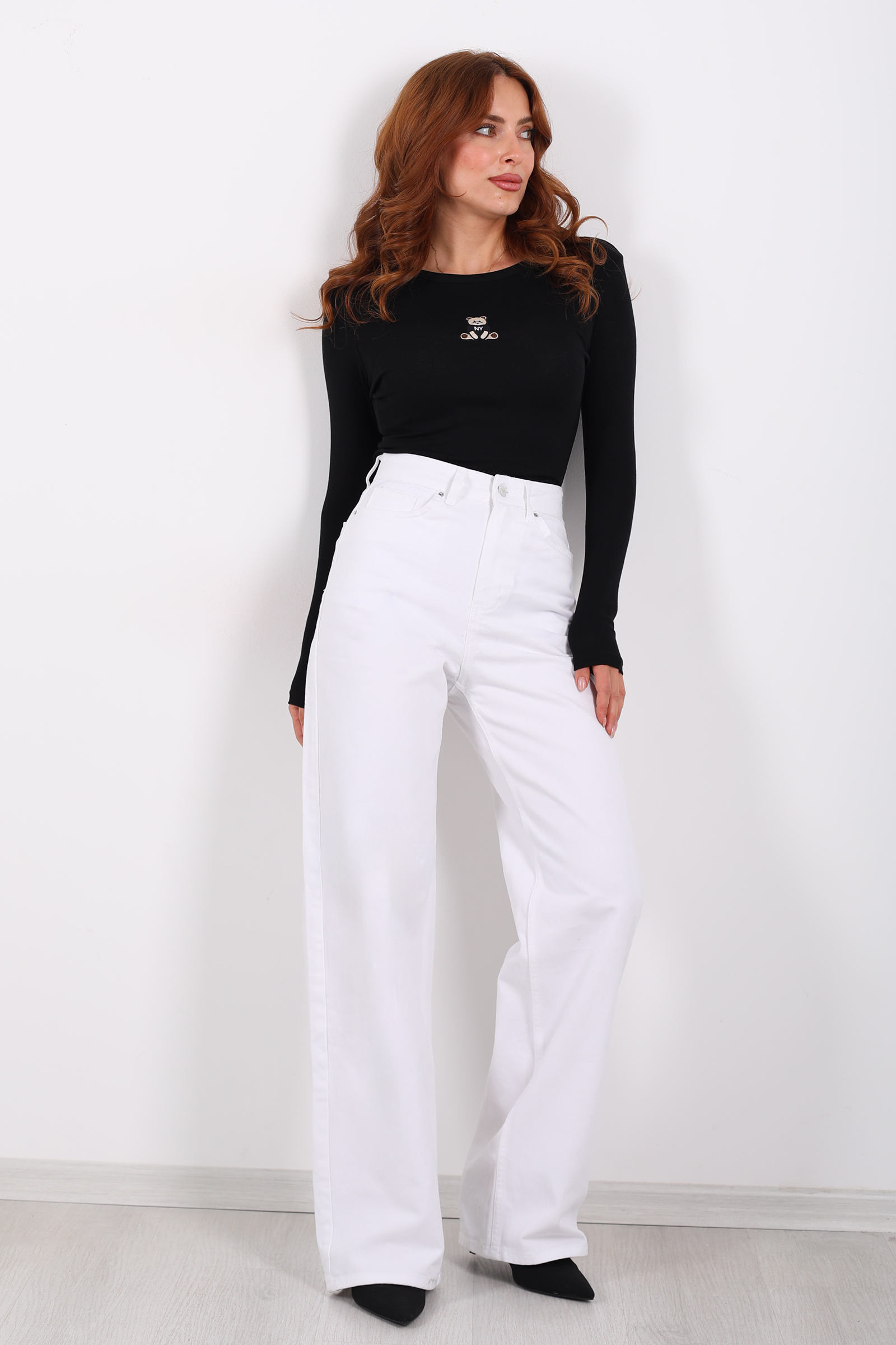 Saf beyazın moderne evrilmiş haliyle tasarlanmış bu yüksek bel boru paça kot, hem şehirli hem zarif bir duruş sunar. Klasik denim çizgisini minimalizm ve ferahlıkla birleştiriyor, dolabınıza hem gündüz hem akşam için çok yönlü bir parça ekliyor.Yüksek bel kesim, beli vurgular ve bacak boyunu görsel olarak uzatır. Yüksek bel pantolonlar, vücudu zarif bir şekilde şekillendirirken klasik silueti korur.%100 denim ya da denim karışımı kaliteli bir kumaştan üretildi.