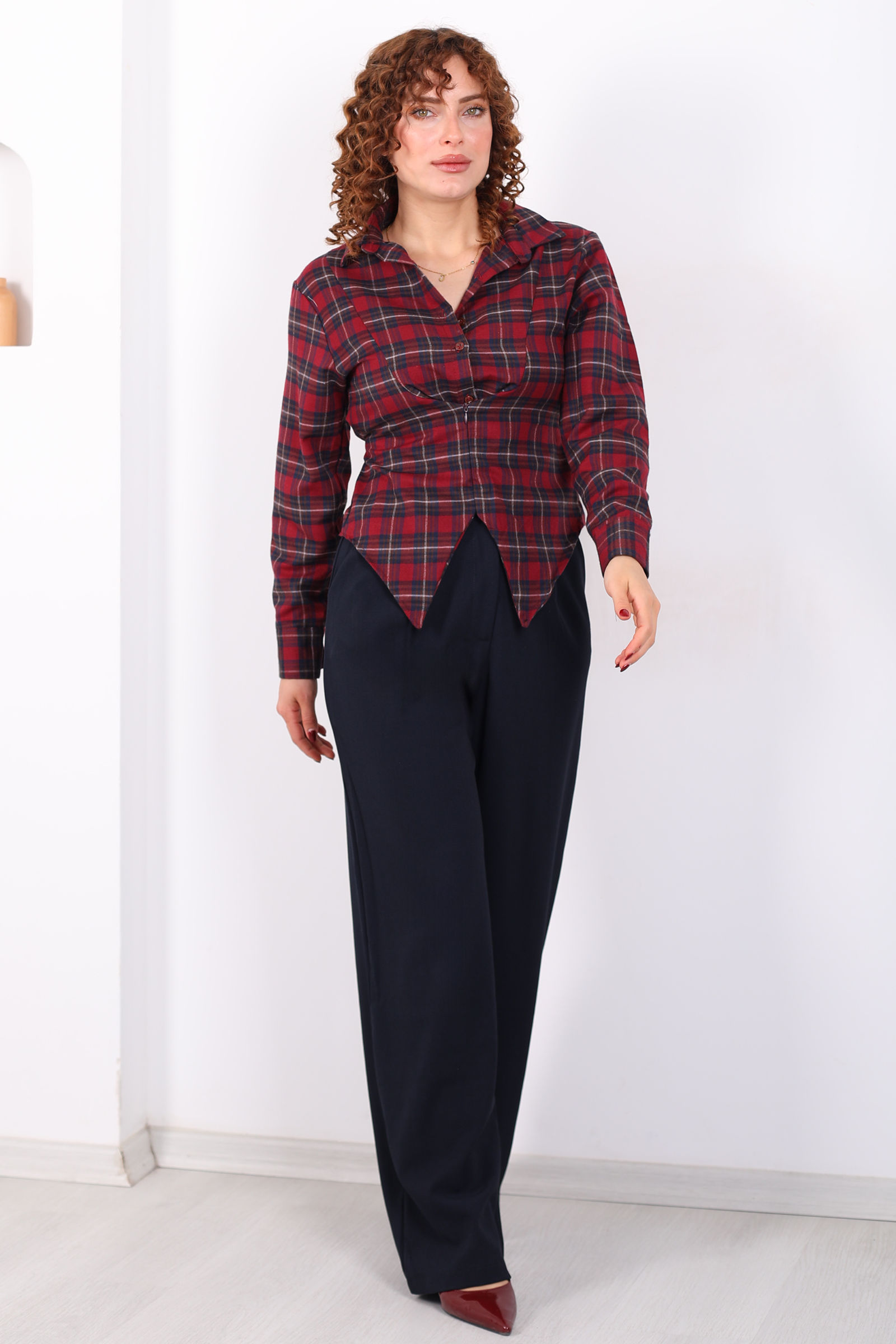 Görseldeki Modelin Ölçüleri: Mankenimizin boyu 165 cm, göğüs ölçüsü 92 cm, beli 67 cm ve kalçası 95 cm'dir. Bu ölçülerdeki mankenimizin üzerinde 36 beden ürün fotoğraflanmıştır.